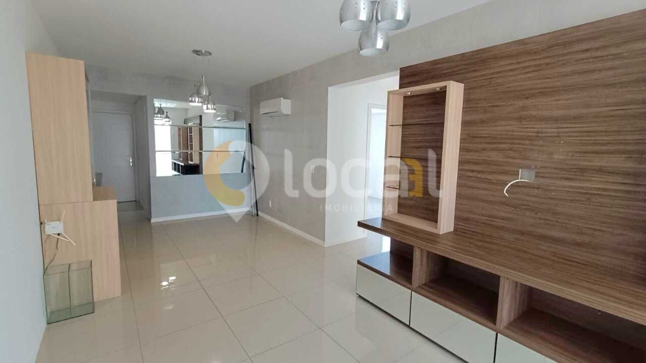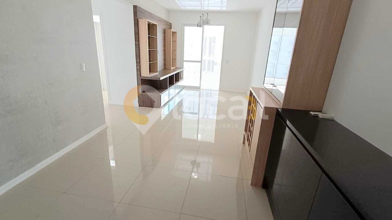 Apartamento de frente com churrasqueira, sacada, 02 dormitórios sendo 01 suíte, banheiro social, sala com 02 ambientes, cozinha e área de serviço.