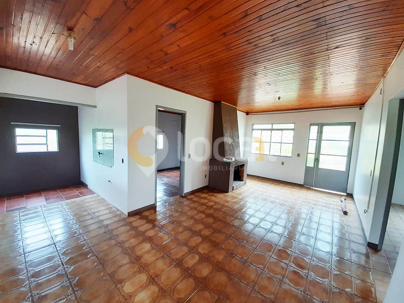 Casa de alvenaria com 02 dormitórios, sala 2 ambientes com lareira, cozinha, 02 banheiros, churrasqueira, área de serviço e garagem.