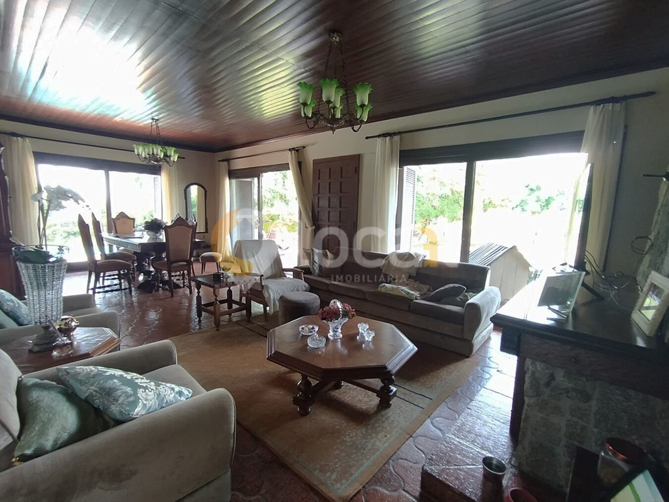 Ao total a estrutura possui: terreno arborizado, piscina, 2 quiosques, 2 salão de festas, 6 dormitórios sendo 4 suítes, 6 banheiros, 4 salas, e um amplo espaço para carros. (fica apenas alguns móveis), churrasqueira, porão, espaço para horta, espaço amplo para carros.