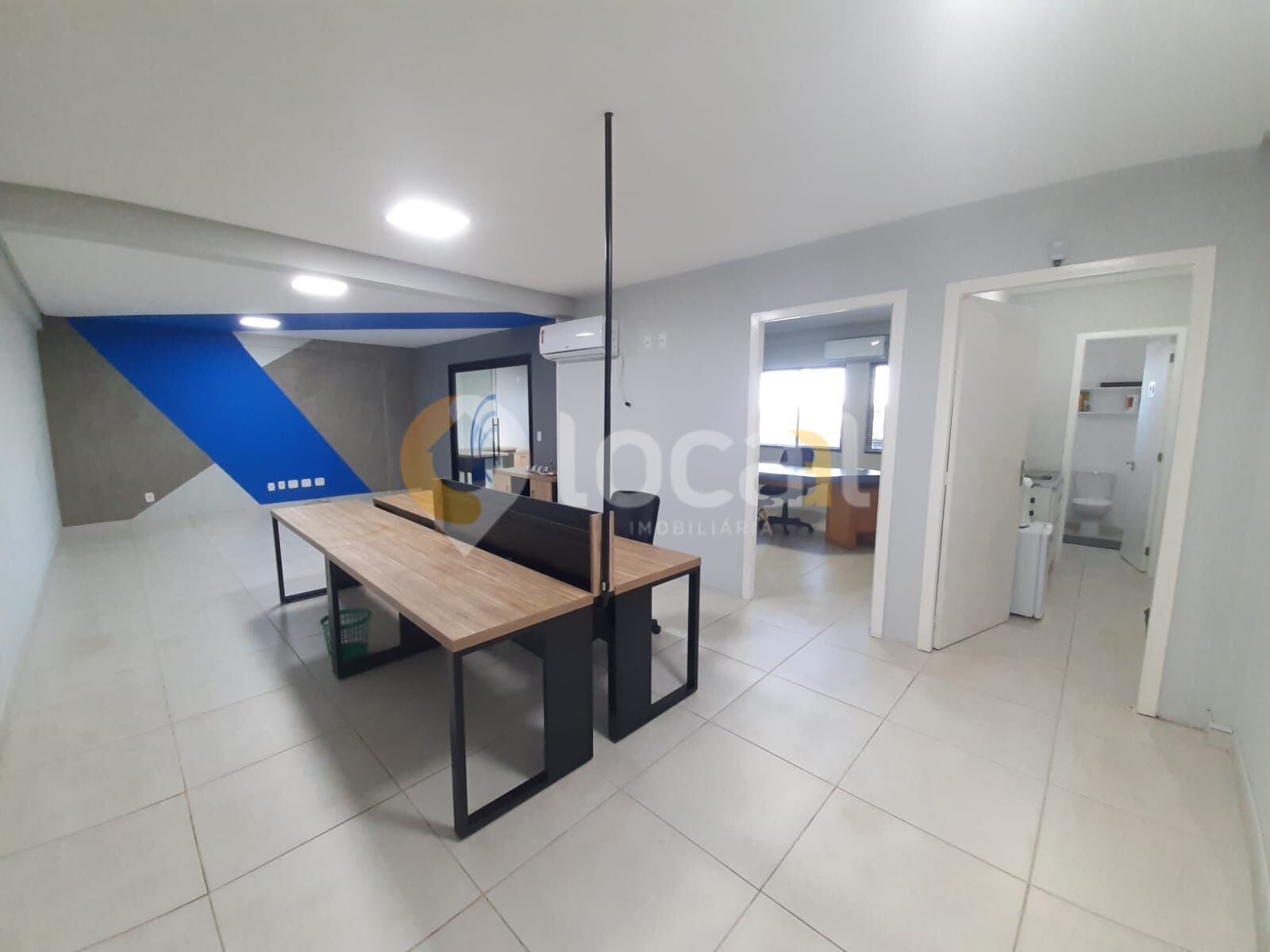 Excelente sala comercial mobiliada, 3 ar condicionados, com 2 escritórios já divididos, ampla sala podendo ser dividida também, cozinha e banheiro.