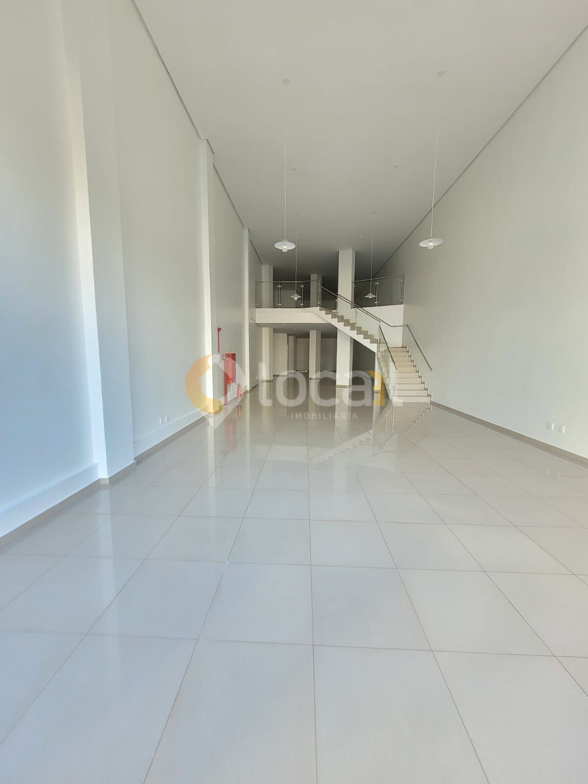 Sala ampla com pé direito alto, 2 pisos, 3 peças (sendo 2 banheiros e 1 cozinha)
